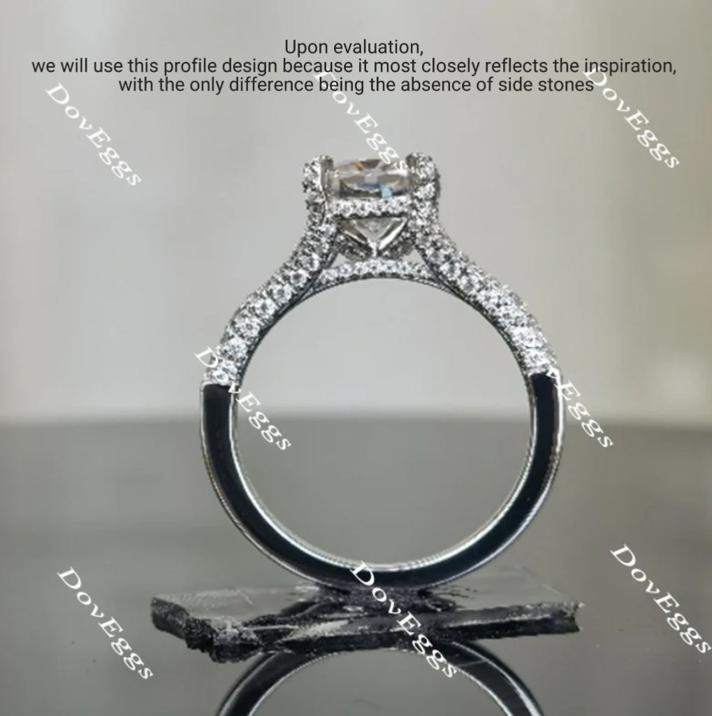 The Nova cut was developed by DovEggs, combines 3 different cuts, and is meant to best showcase moissanite's unique sparkle.