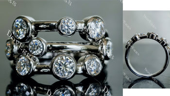 Sold out - Doveggs round bezel three stones moissanite wedding band+sp.priceRaw ? 'price price--on-sale' : 'price'">