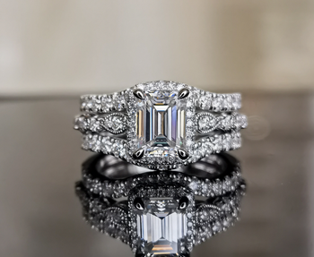 Sold out - DovEggs 2 carat emerald sterling silver moissanite bridal set (2 rings)(3)+sp.priceRaw ? 'price price--on-sale' : 'price'">