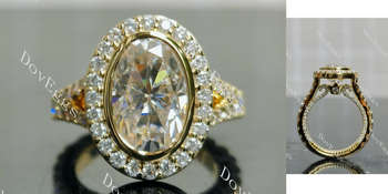 Sold out -  Oval bezel halo split shanks 3/4 eternity moissanite engagement ring| DovEggs+sp.priceRaw ? 'price price--on-sale' : 'price'">
