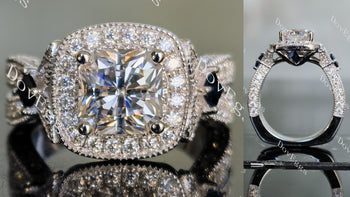 Sold out - Radiant halo pave vintage moissanite engagement ring| DovEggs+sp.priceRaw ? 'price price--on-sale' : 'price'">
