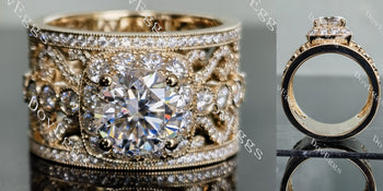 Sold out - Amor Eterno round halo pave vintage wide band moissanite engagement ring(1)+sp.priceRaw ? 'price price--on-sale' : 'price'">