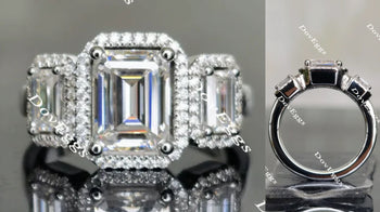 Sold out - Doveggs three stone halo emerald moissanite engagement ring+sp.priceRaw ? 'price price--on-sale' : 'price'">