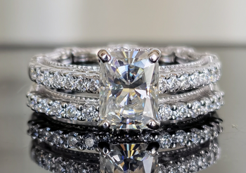 Sold out - DovEggs 2 carat radiant vintage soldered together sterling silver moissanite ring(2)+sp.priceRaw ? 'price price--on-sale' : 'price'">