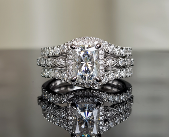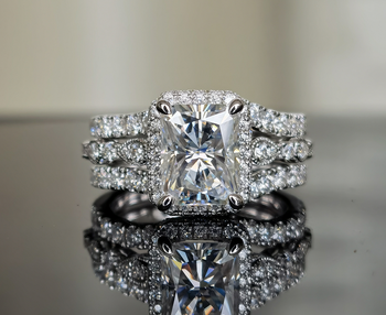 Sold out - DovEggs 3 carat radiant sterling silver moissanite bridal set (2 rings)(1)+sp.priceRaw ? 'price price--on-sale' : 'price'">