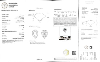 When exploring the luminous world of lab diamonds, a certificate from a recognized grading authority, such as the Gemological Institute of America (GIA), International Gemological Institute (IGI), or the National Gemological Institute of China (NGIC), confirms the diamond's innate qualities and characteristics. Such certifications provide detailed information about crucial aspects, like cut, color, clarity, and carat weight, reassuring you of the diamond's authenticity and quality.