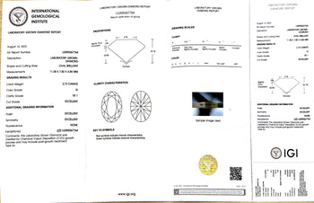 Importantly, these certifications are a powerful testament to the transparency of lab diamonds. By providing traceable documentation, they assure that your jewel is not only beautiful but also crafted with integrity and ingenuity, embodying the exceptional values you embrace. All DovEggs lab diamonds come with a certificate, and DovEggs also offers the option of a dual certification, further enhancing the assurance of quality and authenticity for your treasured piece.