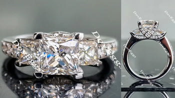 Sold out - Doveggs radiant three-stone moissanite engagement ring(2)+sp.priceRaw ? 'price price--on-sale' : 'price'">