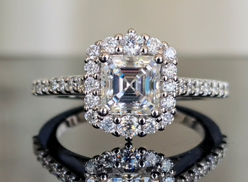Sold out - DovEggs sterling silver 1.3 carat halo asscher moissanite engagement ring(2)+sp.priceRaw ? 'price price--on-sale' : 'price'">