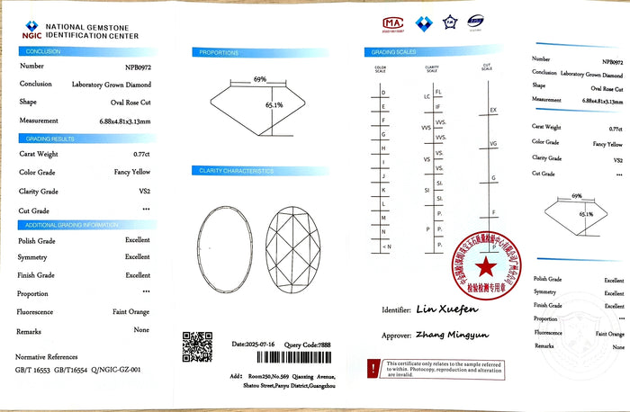 NGIC Certificate #: NPB0972(We will ship the lab-grown diamond to you along with the NGIC certificate. You can scan the barcode on the report to access the third party certificate.)