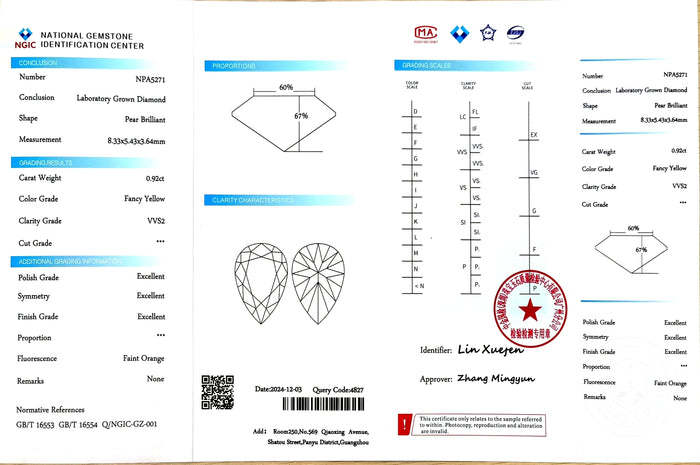 NGIC Certificate #: NPA5271(We will ship the lab-grown diamond to you along with the NGIC certificate. You can scan the barcode on the report to access the third party certificate.)