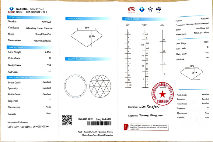 NGIC Certificate #: NPA7668(We will ship the lab-grown diamond to you along with the NGIC Certificate. You can scan the barcode on the report to access the third party certificate.)