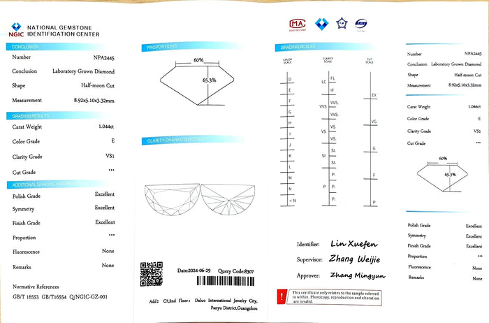 NGIC Certificate #: NPA2445(We will ship the lab-grown diamond to you along with the NGIC certificate. You can scan the barcode on the report to access the third party certificate.)