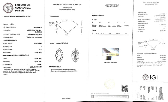 IGI Certificate #: LG619455658(We will ship the lab-grown diamond to you along with the IGI certificate. You can scan the barcode on the report to access the third party certificate.)