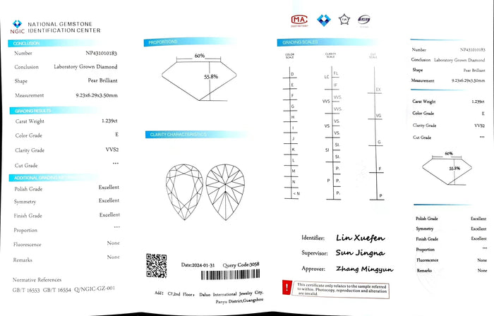 NGIC Certificate #: NP431010183(We will ship the lab-grown diamond to you along with the NGIC certificate. You can scan the barcode on the report to access the third party certificate.)