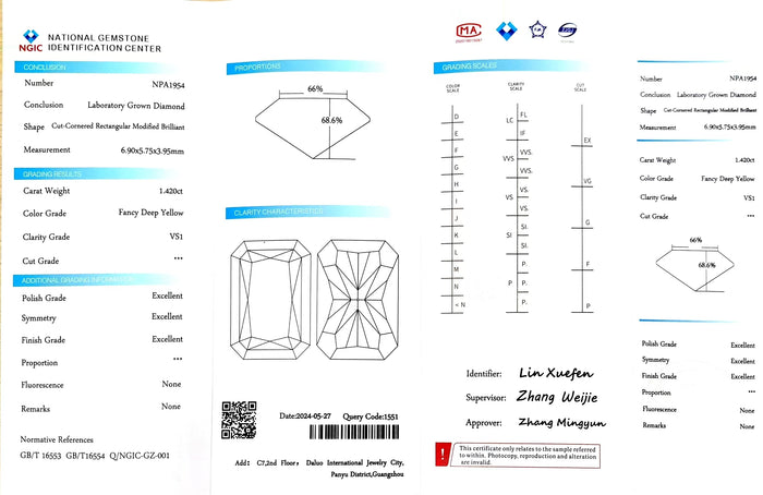 NGIC Certificate #: NPA1954(We will ship the lab-grown diamond to you along with the NGIC certificate. You can scan the barcode on the report to access the third party certificate.)