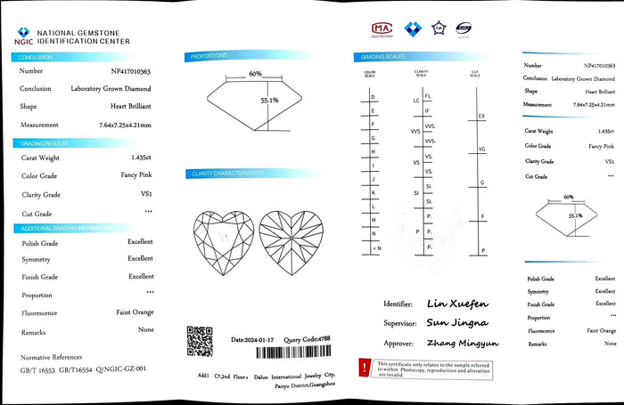 NGIC Certificate #: NP417010363(We will ship the lab-grown diamond to you along with the NGIC certificate. You can scan the barcode on the report to access the third party certificate.)