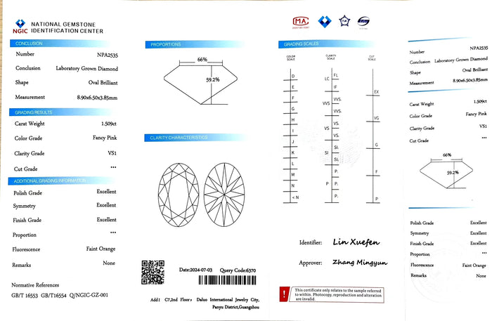 NGIC Certificate #: NPA2535(We will ship the lab-grown diamond to you along with the NGIC certificate. You can scan the barcode on the report to access the third party certificate.)