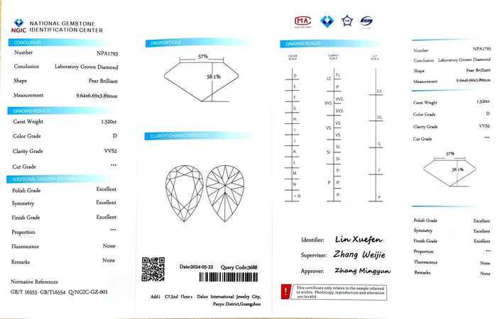 NGIC Certificate #: NPA1793(We will ship the lab-grown diamond to you along with the NGIC certificate. You can scan the barcode on the report to access the third party certificate.)