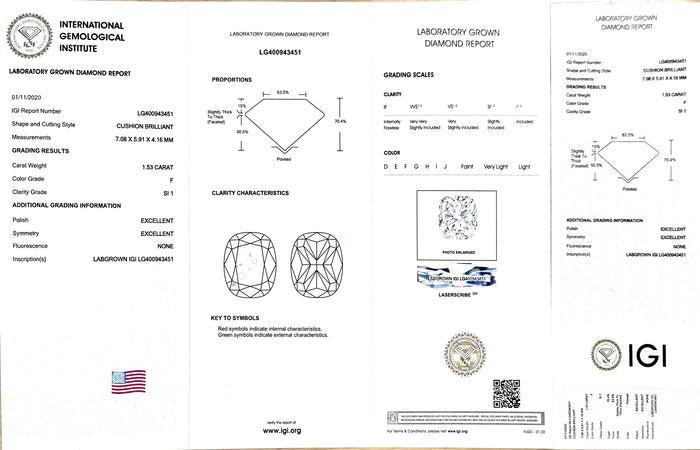 IGI Certificate #: LG400943451(We will ship the lab-grown diamond to you along with the IGI ertificate. You can scan the barcode on the report to access the third party certificate.)