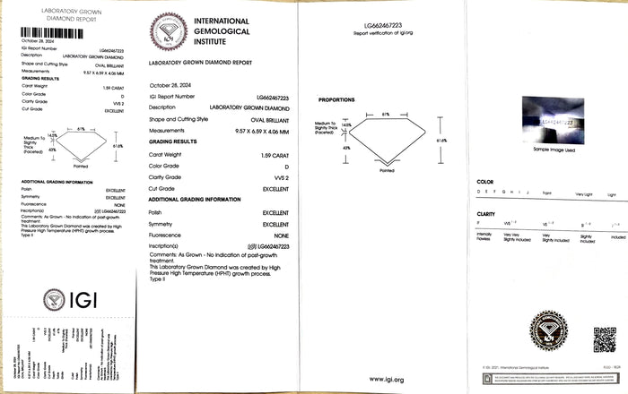 IGI Certificate #: LG662467223(We will ship the lab-grown diamond to you along with the IGI ertificate. You can scan the barcode on the report to access the third party certificate.)