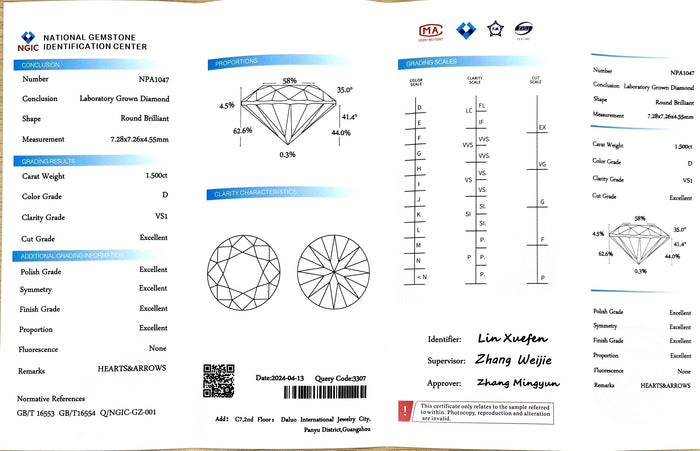 NGIC Certificate #: NPA1047(We will ship the lab-grown diamond to you along with the NGIC certificate. You can scan the barcode on the report to access the third party certificate.)