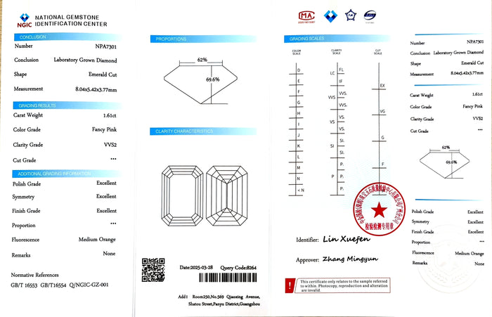 NGIC Certificate #: NPA7301(We will ship the lab-grown diamond to you along with the NGIC Certificate. You can scan the barcode on the report to access the third party certificate.)