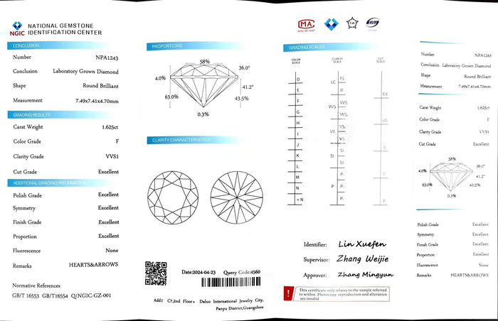 NGIC Certificate #: NPA1243(We will ship the lab-grown diamond to you along with the NGIC certificate. You can scan the barcode on the report to access the third party certificate.)