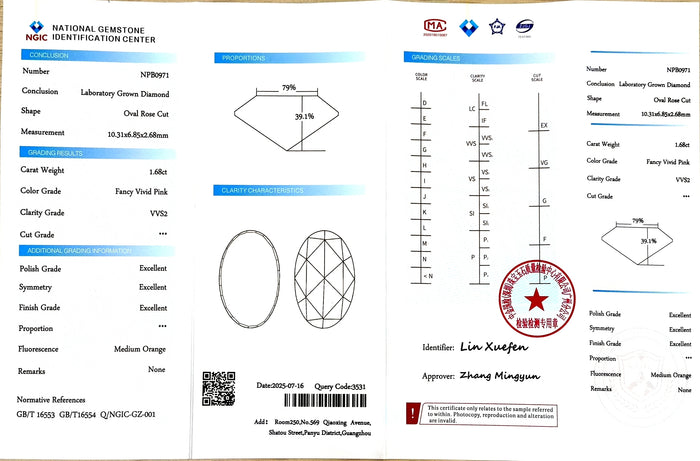 NGIC Certificate #: NPB0971(We will ship the lab-grown diamond to you along with the NGIC certificate. You can scan the barcode on the report to access the third party certificate.)
