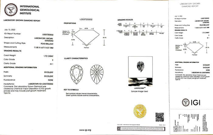 IGI Certificate #: LG537253032(We will ship the lab-grown diamond to you along with the IGI certificate. You can scan the barcode on the report to access the third party certificate.)