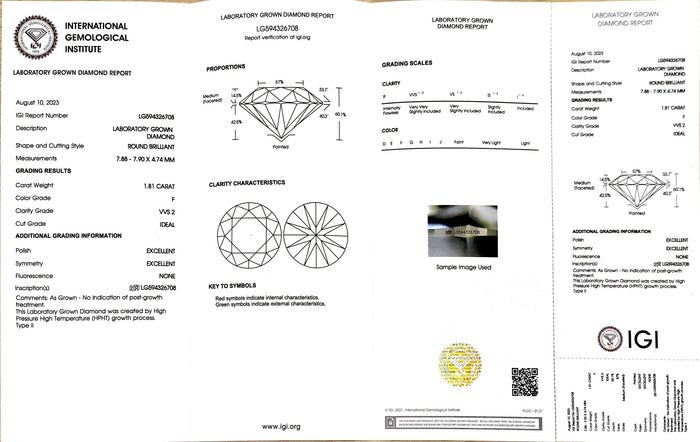 IGI Certificate #: LG594326708(We will ship the lab-grown diamond to you along with the IGI certificate. You can scan the barcode on the report to access the third party certificate.)