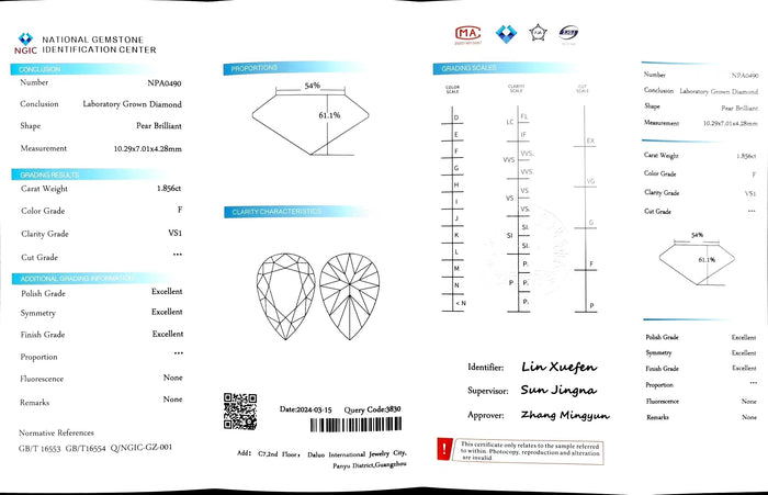 NGIC Certificate #: NPA0490(We will ship the lab-grown diamond to you along with the NGIC certificate. You can scan the barcode on the report to access the third party certificate.)