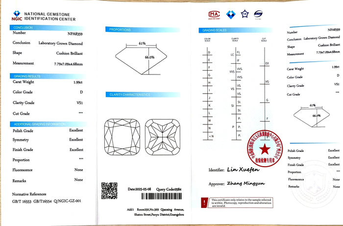 NGIC Certificate #: NPA8359(We will ship the lab-grown diamond to you along with the NGIC Certificate. You can scan the barcode on the report to access the third party certificate.)