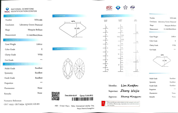 NGIC Certificate #: NPA1466(We will ship the lab-grown diamond to you along with the NGIC certificate. You can scan the barcode on the report to access the third party certificate.)