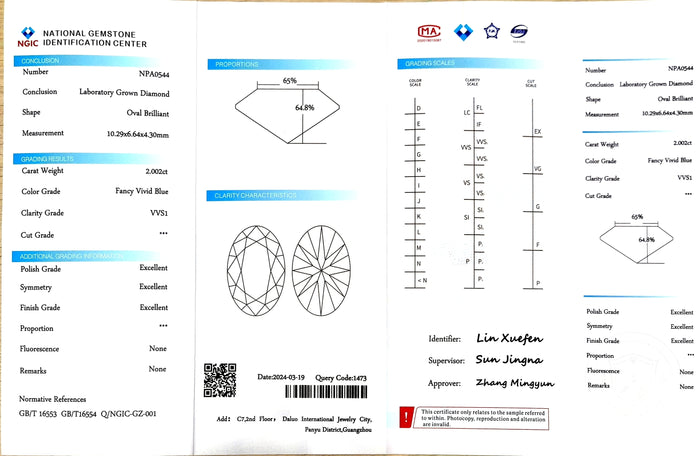 NGIC Certificate #: NPA0544(We will ship the lab-grown diamond to you along with the NGIC certificate. You can scan the barcode on the report to access the third party certificate.)