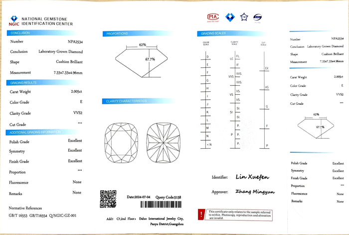 NGIC Certificate #: NPA2534(We will ship the lab-grown diamond to you along with the NGIC certificate. You can scan the barcode on the report to access the third party certificate.)