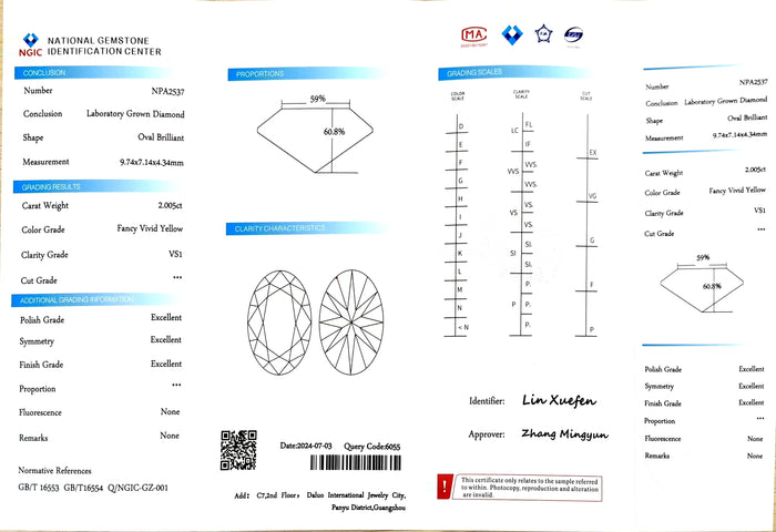 NGIC Certificate #: NPA2537(We will ship the lab-grown diamond to you along with the NGIC certificate. You can scan the barcode on the report to access the third party certificate.)