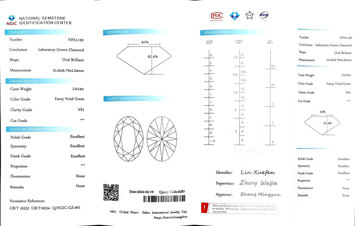 NGIC Certificate #: NPA1190(We will ship the lab-grown diamond to you along with the NGIC certificate. You can scan the barcode on the report to access the third party certificate.)