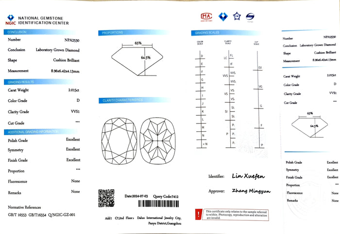 NGIC Certificate #: NPA2530(We will ship the lab-grown diamond to you along with the NGIC certificate. You can scan the barcode on the report to access the third party certificate.)