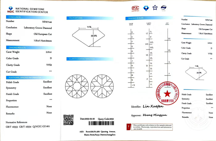 NGIC Certificate #: NPA7144(We will ship the lab-grown diamond to you along with the NGIC Certificate. You can scan the barcode on the report to access the third party certificate.)