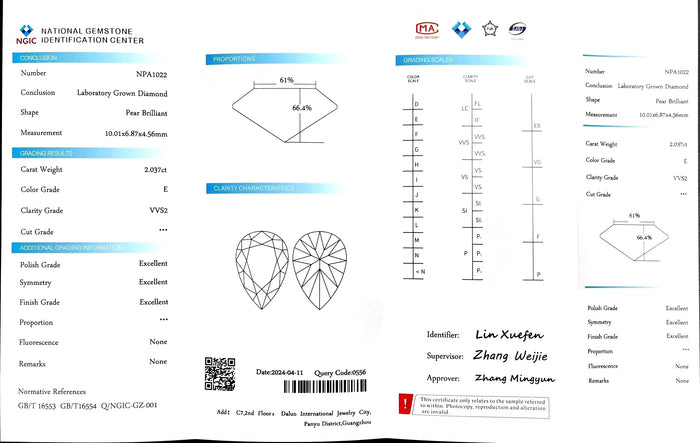 NGIC Certificate #: NPA1022(We will ship the lab-grown diamond to you along with the NGIC certificate. You can scan the barcode on the report to access the third party certificate.)