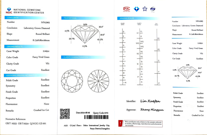 NGIC Certificate #: NPA2965(We will ship the lab-grown diamond to you along with the NGIC certificate. You can scan the barcode on the report to access the third party certificate.)