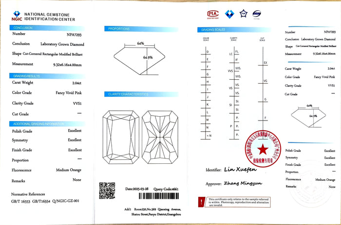 NGIC Certificate #: NPA7293(We will ship the lab-grown diamond to you along with the NGIC Certificate. You can scan the barcode on the report to access the third party certificate.)