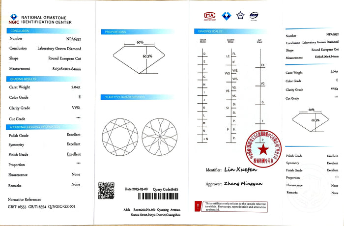 NGIC Certificate #: NPA6932(We will ship the lab-grown diamond to you along with the NGIC certificate. You can scan the barcode on the report to access the third party certificate.)