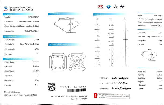 NGIC Certificate #: NP412030317(We will ship the lab-grown diamond to you along with the NGIC certificate. You can scan the barcode on the report to access the third party certificate.)
