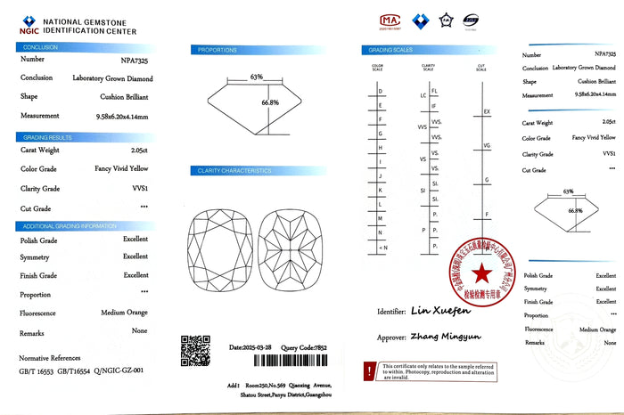 NGIC Certificate #: NPA7325(We will ship the lab-grown diamond to you along with the NGIC Certificate. You can scan the barcode on the report to access the third party certificate.)
