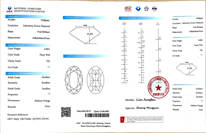NGIC Certificate #: NPB3401(We will ship the lab-grown diamond to you along with the NGIC certificate. You can scan the barcode on the report to access the third party certificate.)