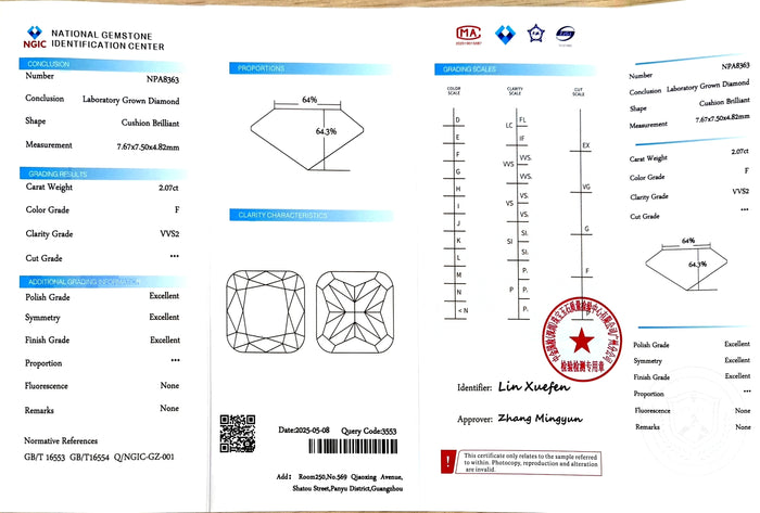 NGIC Certificate #: NPA8363 (We will ship the lab-grown diamond to you along with the NGIC Certificate. You can scan the barcode on the report to access the third party certificate.)