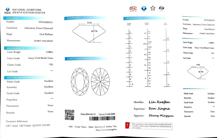 NGIC Certificate #: NP412030312(We will ship the lab-grown diamond to you along with the NGIC certificate. You can scan the barcode on the report to access the third party certificate.)