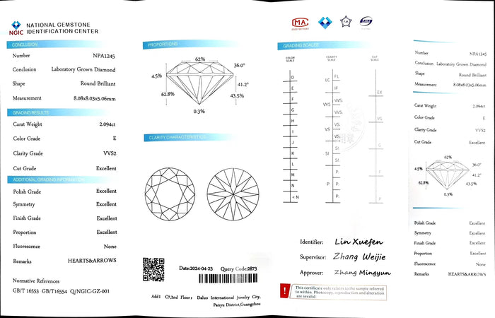 NGIC Certificate #: NPA1245(We will ship the lab-grown diamond to you along with the NGIC certificate. You can scan the barcode on the report to access the third party certificate.)